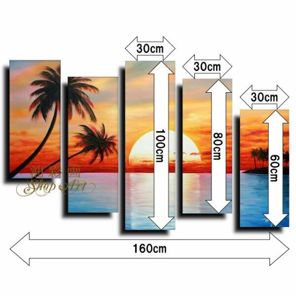 5パネル 『南の島 夕焼け Lサイズ』 油彩画 インテリア モダン アートパネル 1576