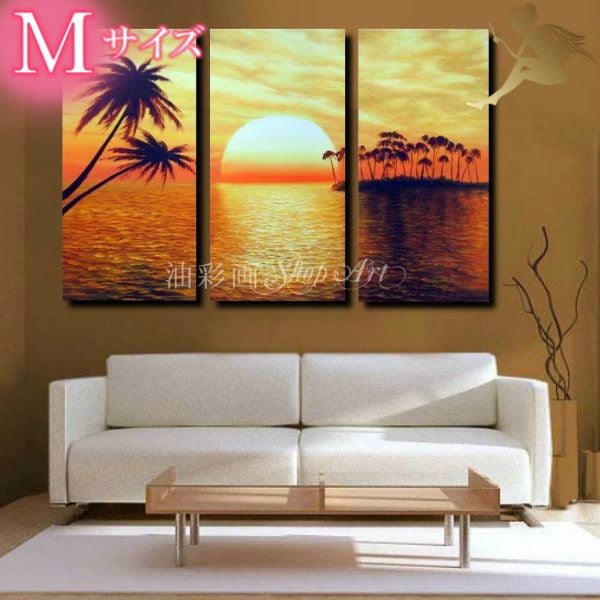 3パネル 『やしの木と海2 Mサイズ』 油彩画 インテリア モダン アートパネル 1155m