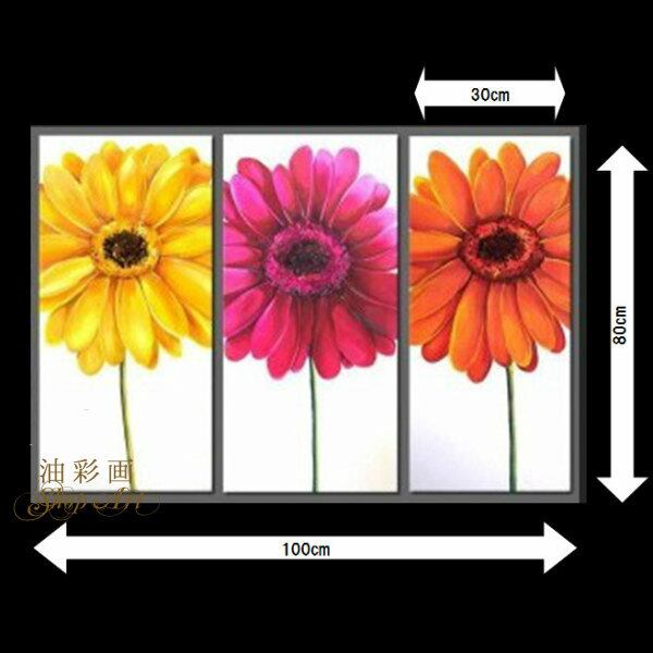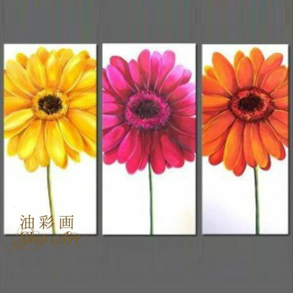 3パネル 『3色のガーベラ』 油彩画 インテリア モダン アートパネル W0162