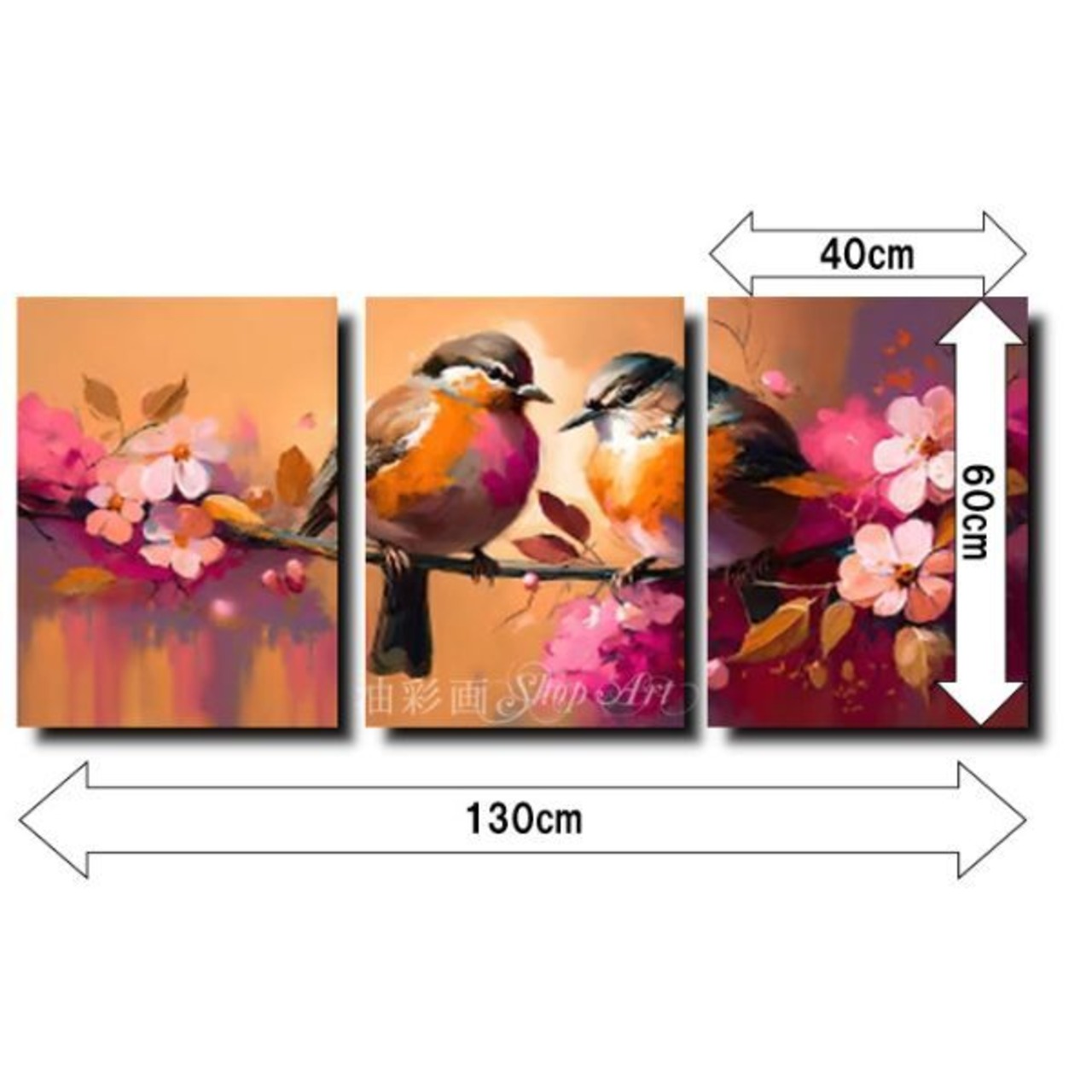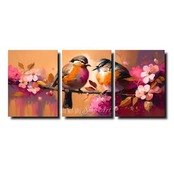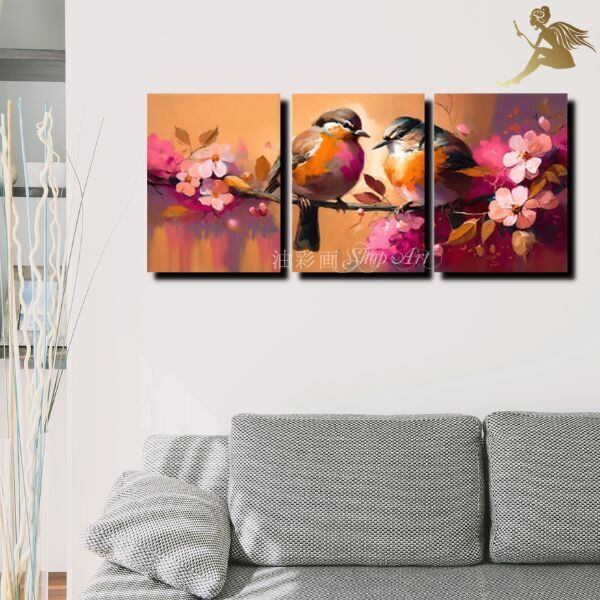 3パネル 『小鳥カップル』 油彩画 インテリア モダン アートパネル 1867