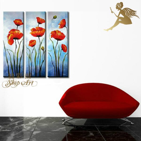 3パネル 青空の下のオレンジの花 油彩画 インテリア モダン アートパネル W0194