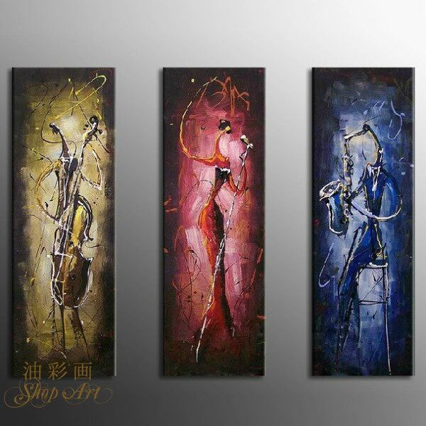 3パネル 3人の音楽家 油彩画 インテリア モダン アートパネル W0384