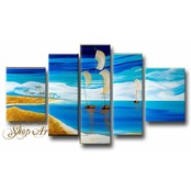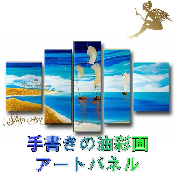 5パネル 『南国の島とヨット』 油彩画 インテリア モダン アートパネル W0964