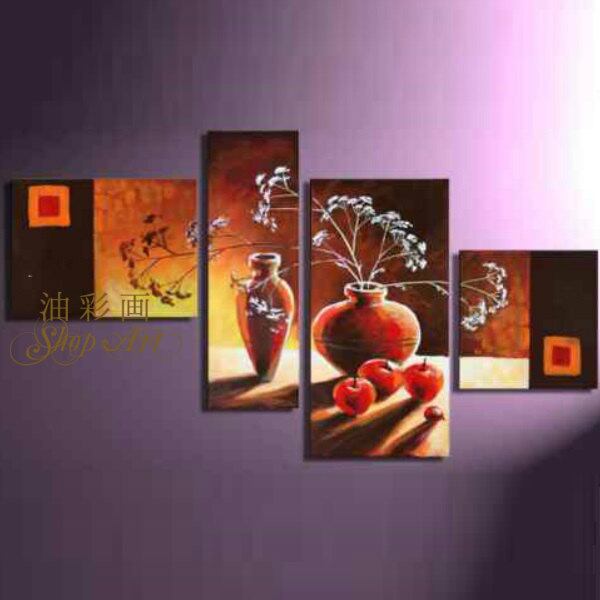 4パネル 『りんごと花』 油彩画 インテリア モダン アートパネル W0152