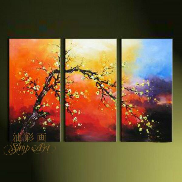 3パネル 『枝に咲く黄色いお花とグラデーション』 油彩画 インテリア モダン アートパネル W0912