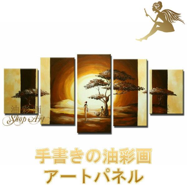 5パネル 砂漠と木と人 油彩画 インテリア モダン アートパネル W0973
