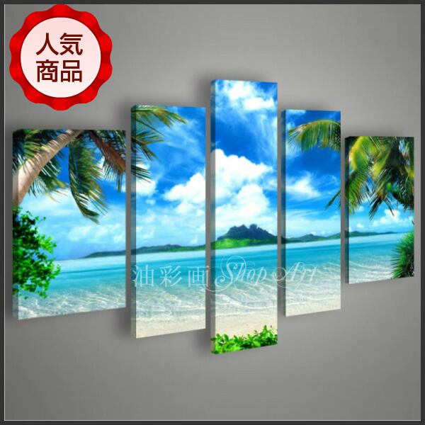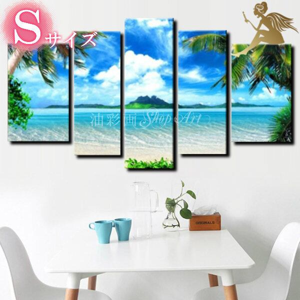 5パネル 『晴天のプライベートビーチ Sサイズ』 油彩画 インテリア モダン アートパネル 1163S
