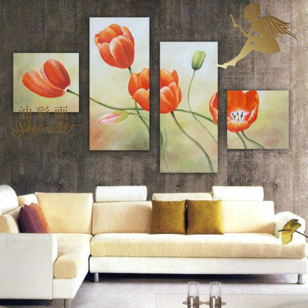 4パネル 『オレンジの花2』 油彩画 インテリア モダン アートパネル W0934