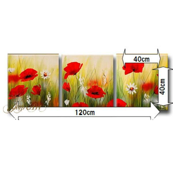 3パネル 『赤い花』 油彩画 インテリア モダン アートパネル W0942