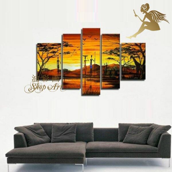 5パネル 『村の風景』 油彩画 インテリア モダン アートパネル W0435