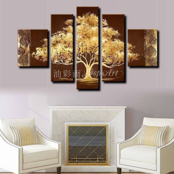 5パネル 『一本の木 Sサイズ』 油彩画 インテリア モダン アートパネル 1226S