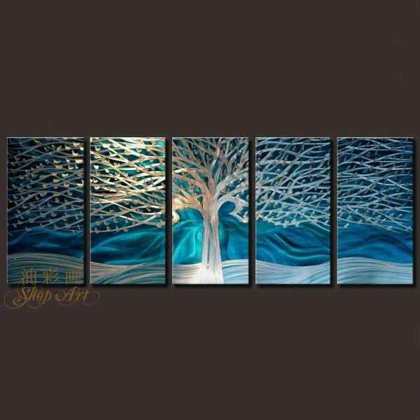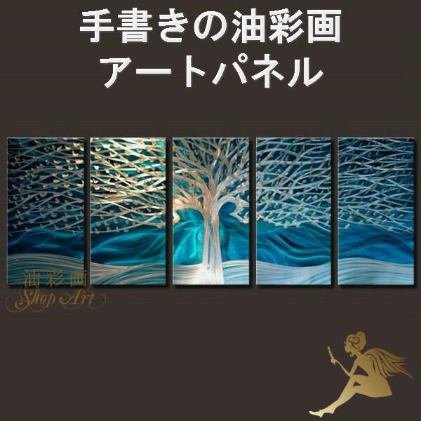 5パネル 『冬の森』 油彩画 インテリア モダン アートパネル 1196