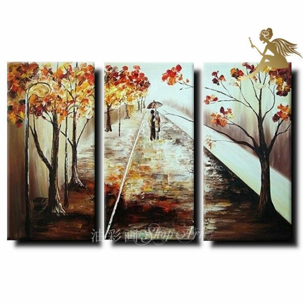 3パネル 『秋の道』 油彩画 インテリア モダン アートパネル 1651