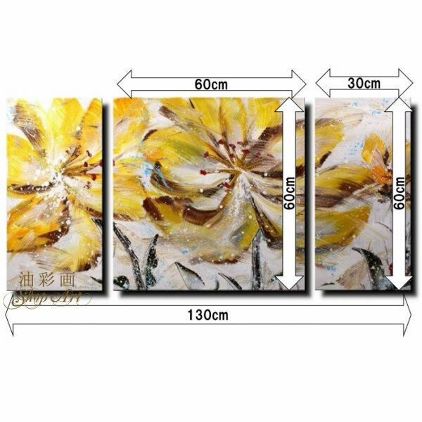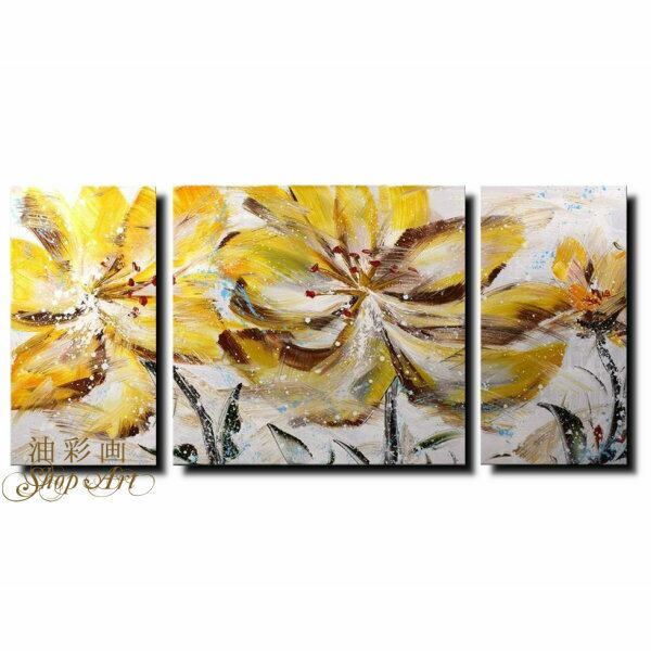 3パネル 『大きな黄色い花』 油彩画 インテリア モダン アートパネル 1669