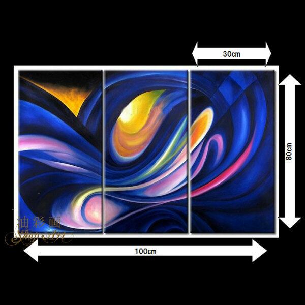 3パネル 『青いぐるぐる』 油彩画 インテリア モダン アートパネル W0245