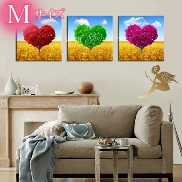 3パネル 『ハートの木 秋 Mサイズ』 油彩画 インテリア モダン アートパネル 1722