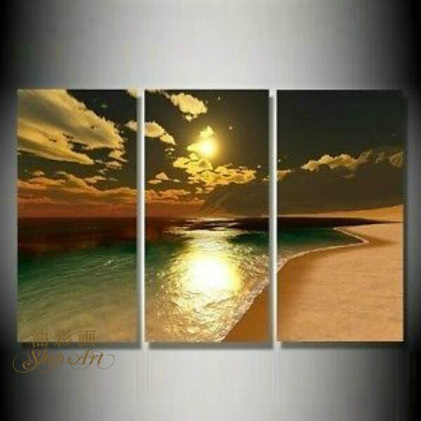 3パネル 『浜辺の夕べ』 油彩画 インテリア モダン アートパネル 1247