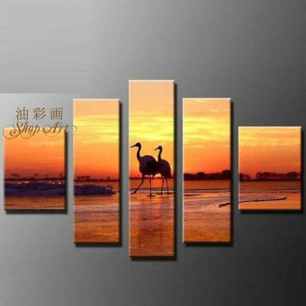 5パネル 『野鳥』 油彩画 インテリア モダン アートパネル 1261