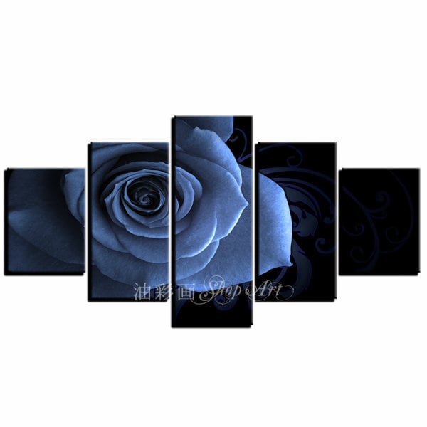 5パネル 『群青ブルーローズ』 油彩画 インテリア モダン アートパネル 1720