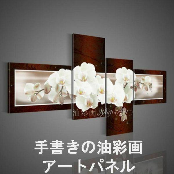 人気!4パネル 胡蝶蘭 ブラウン系 Mサイズ 油彩画 インテリア モダン アートパネル 1375