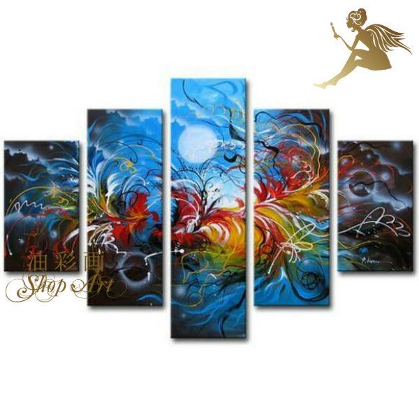 5パネル 『ブルーの世界』 油彩画 インテリア モダン アートパネル 1377