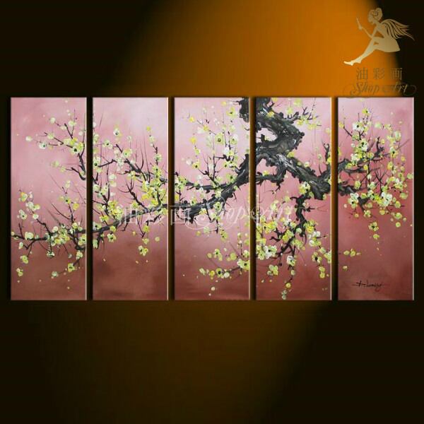 5パネル 緑のお花 和 油彩画 インテリア モダン アートパネル 1397
