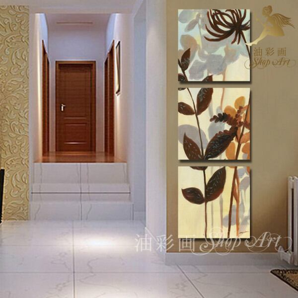 3パネル 縦 葉っぱ ブラウン 油彩画 インテリア モダン アートパネル 1404