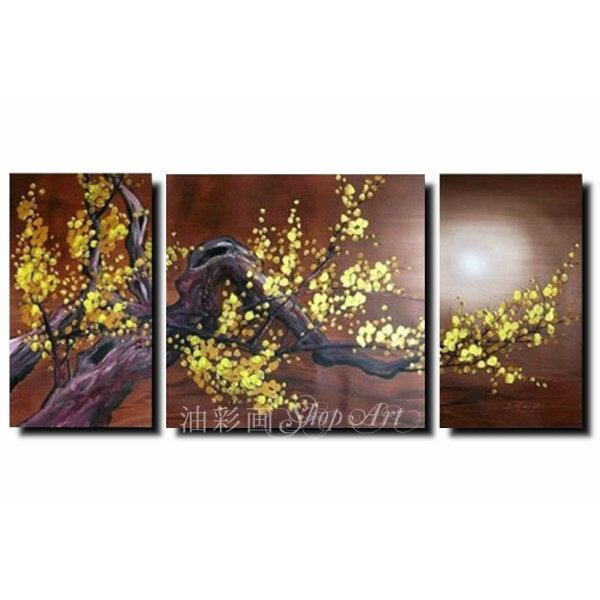 3パネル 『太い木に咲く黄色のお花』 油彩画 インテリア モダン アートパネル 1760