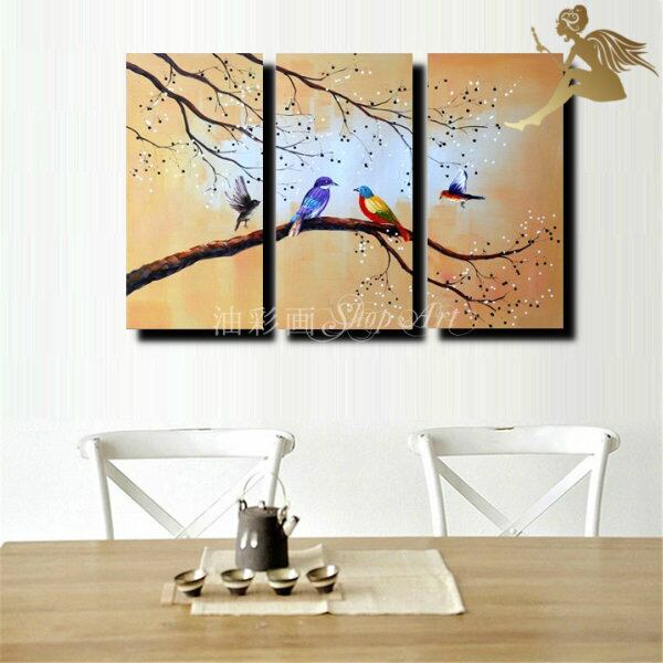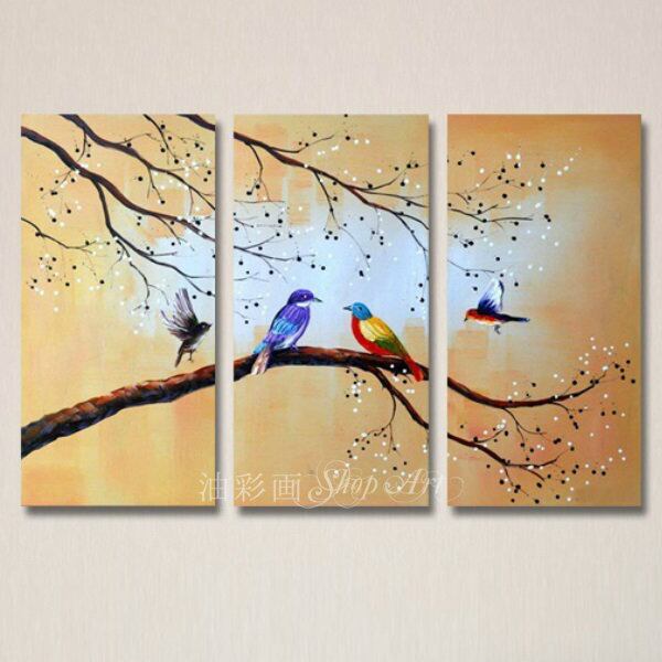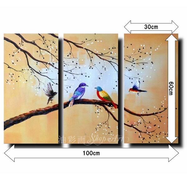 3パネル 『綺麗な小鳥たち』 油彩画 インテリア モダン アートパネル 1754