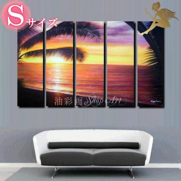 5パネル 『やしの木夕暮れ Sサイズ』 油彩画 インテリア モダン アートパネル 1052