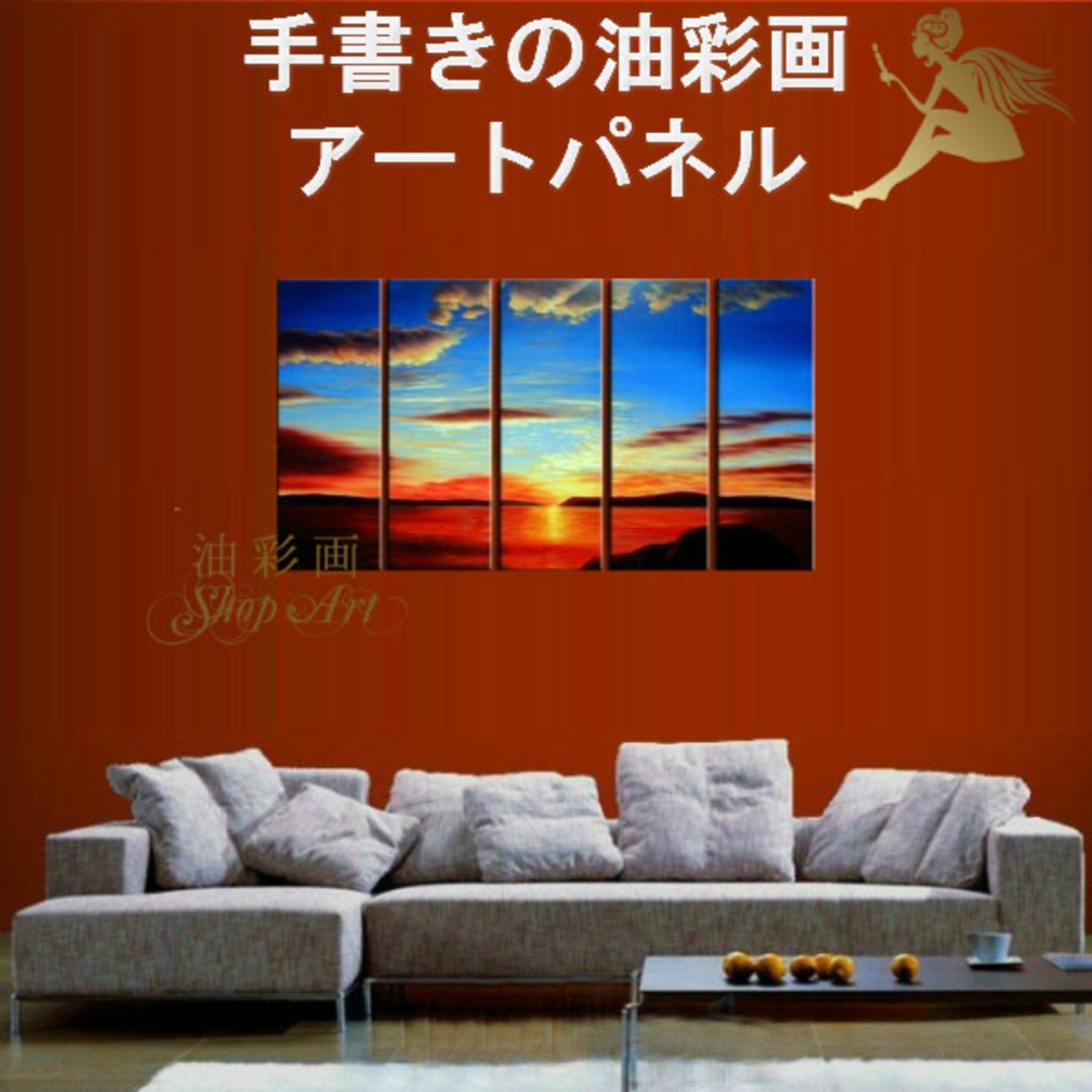 5パネル 『日の出の海と空』 油彩画 インテリア モダン アートパネル 1135