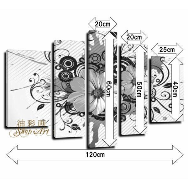 5パネル 『お花 モノトーン Sサイズ』 油彩画 インテリア モダン アートパネル 1137