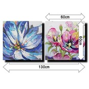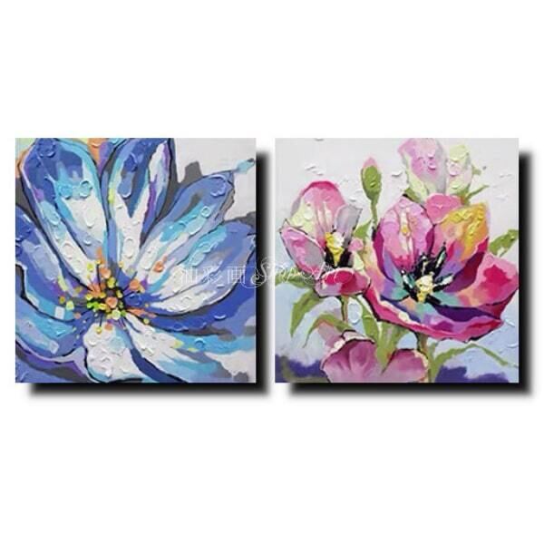 2パネル 『ピンクとブルーのお花』 油彩画 インテリア モダン アートパネル 1798