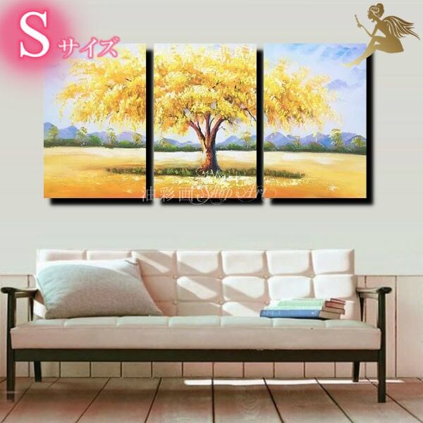 3パネル 『黄色い木の風景 Sサイズ』 油彩画 インテリア モダン アートパネル 1791s