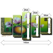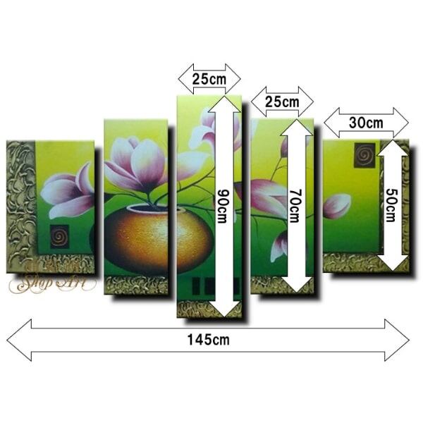 5パネル 『花瓶のピンクフラワー グリーン』 油彩画 インテリア モダン アートパネル 1816