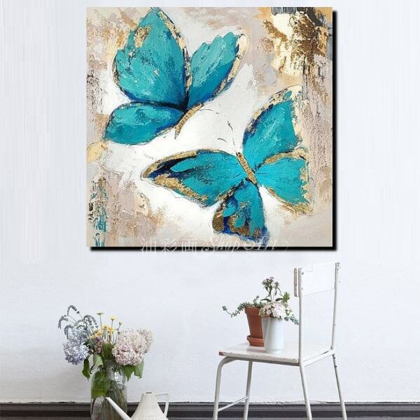 1パネル 水色の蝶々 Lサイズ 油彩画 インテリア モダン アートパネル 5052l