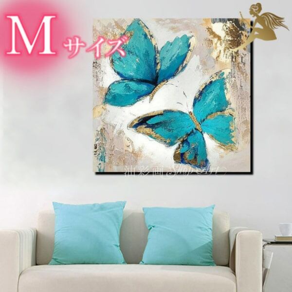 1パネル 水色の蝶々 Mサイズ 油彩画 インテリア モダン アートパネル 5052m