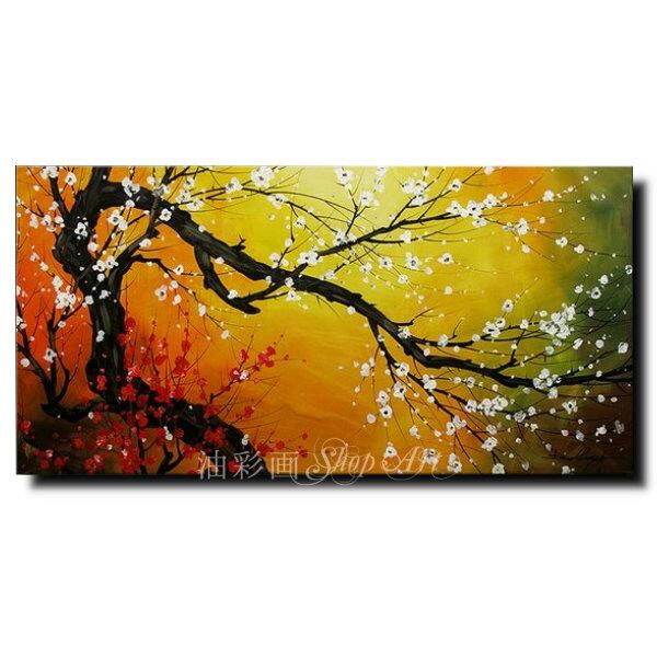 1パネル 秋の太い枝の紅白花 Mサイズ 油彩画 インテリア モダン アートパネル 5060m