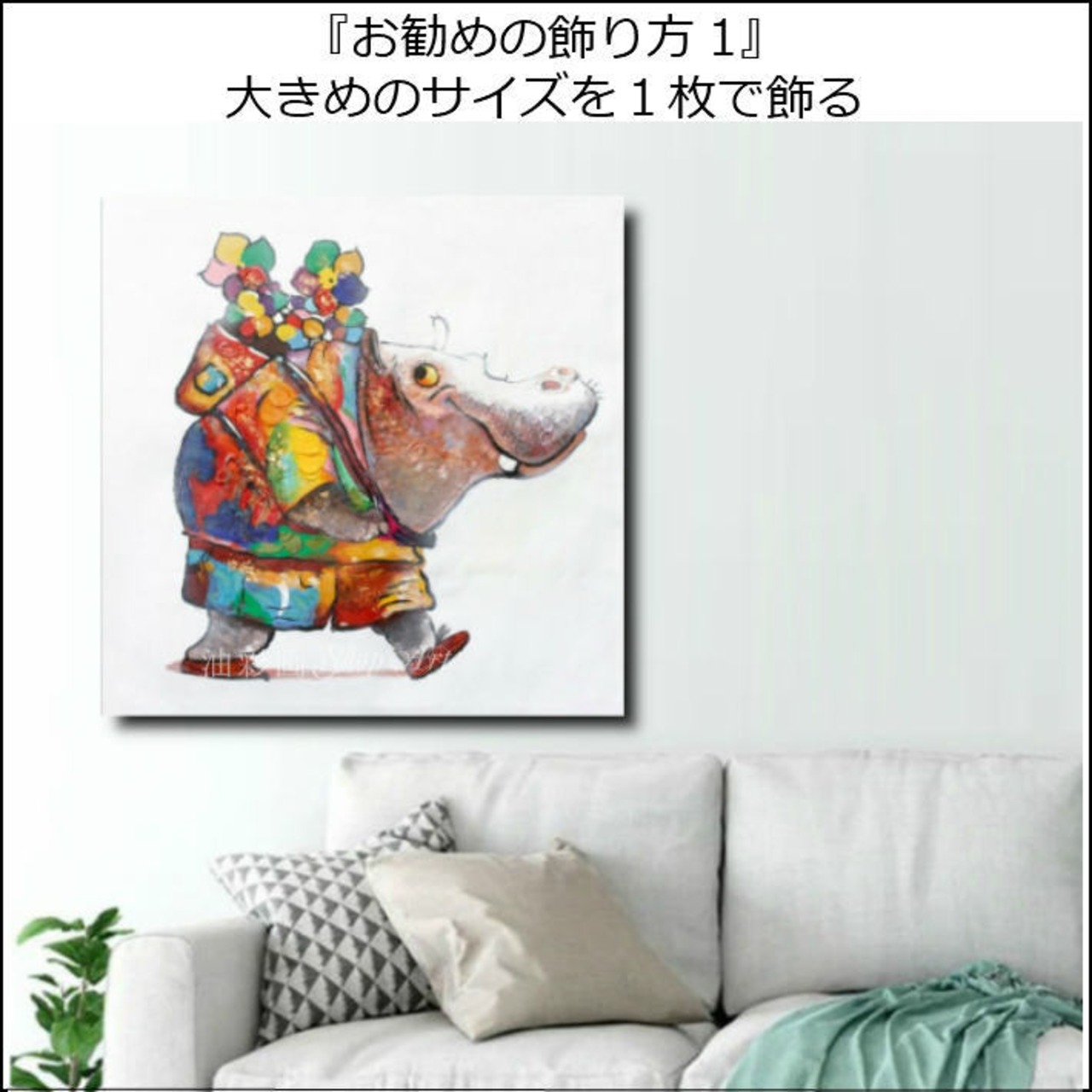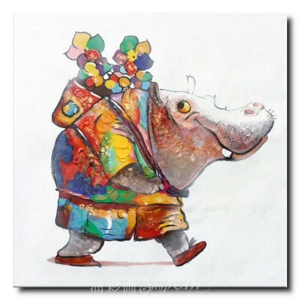 1パネル アニマルポップアート ニコニコかばさん Sサイズ 油彩画 インテリア モダン アートパネル 5079s