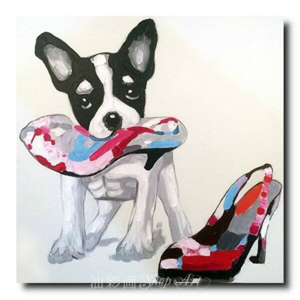 1パネル アニマルポップアート ハイヒールとワンちゃん Lサイズ 油彩画 インテリア モダン アートパネル 5086l