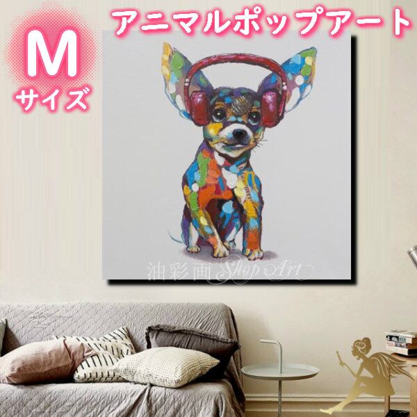 1パネル アニマルポップアート 音楽大好きワンチャン Mサイズ 油彩画 インテリア モダン アートパネル 5087m