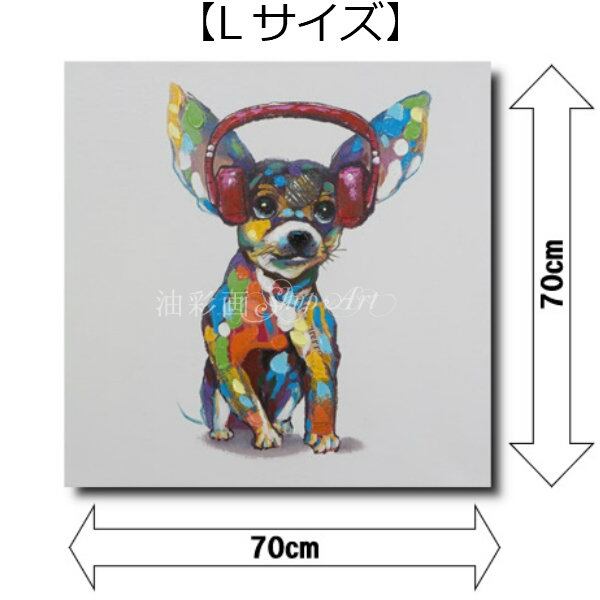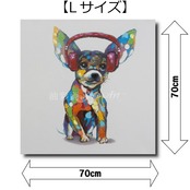 1パネル アニマルポップアート 音楽大好きワンチャン Lサイズ 油彩画 インテリア モダン アートパネル 5087l