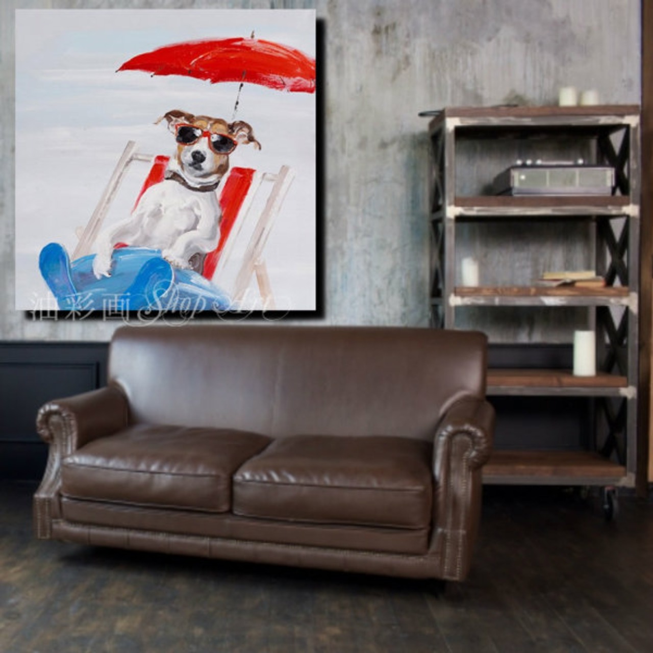 1パネル アニマルポップアート ビーチの犬1 Lサイズ 油彩画 インテリア モダン アートパネル 5091l