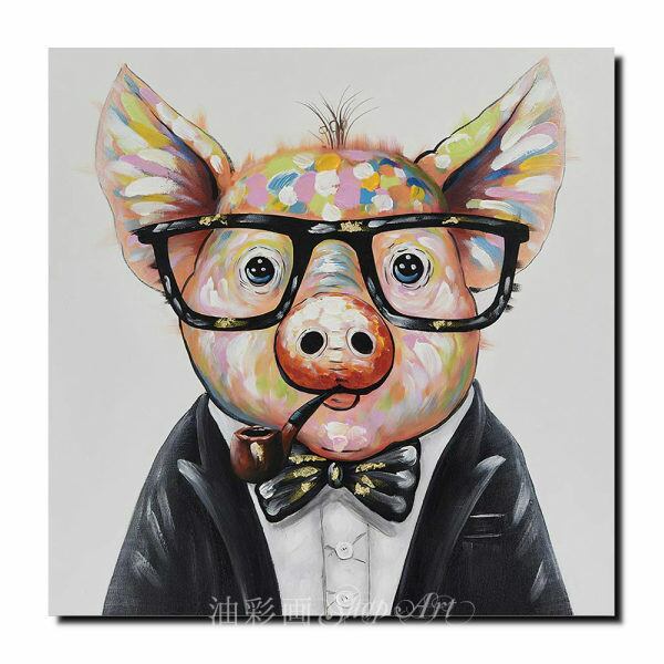 1パネル アニマルポップアート 紳士なぶたさん1 Sサイズ 油彩画 インテリア モダン アートパネル 5093s