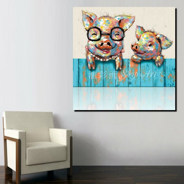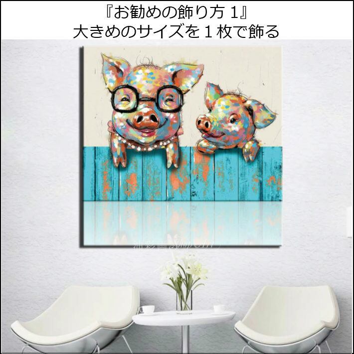 1パネル アニマルポップアート ブタの親子 Mサイズ 油彩画 インテリア モダン アートパネル 5095m