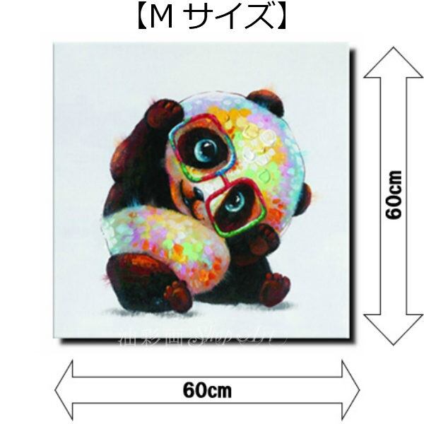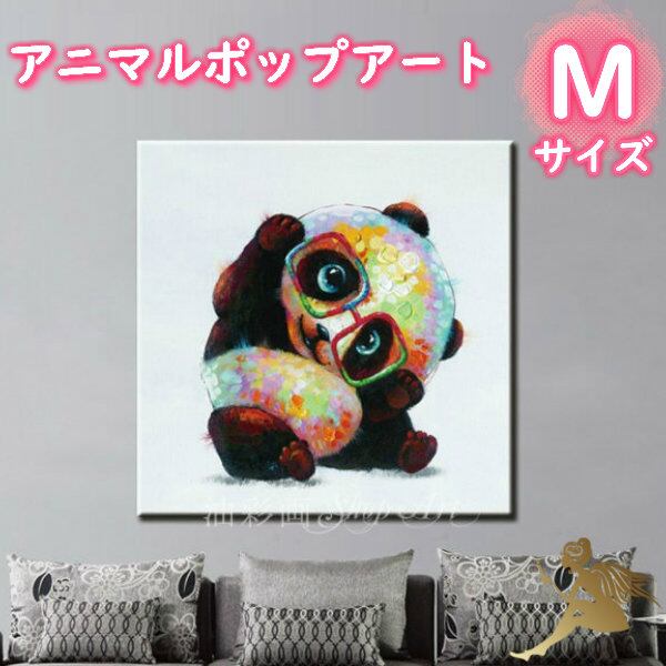 1パネル アニマルポップアート チビパンダ Mサイズ 油彩画 インテリア モダン アートパネル 5098m