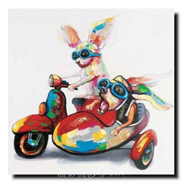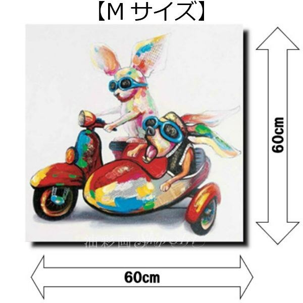 1パネル アニマルポップアート バイクでドライブ Mサイズ 油彩画 インテリア モダン アートパネル 5099m