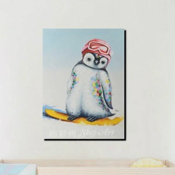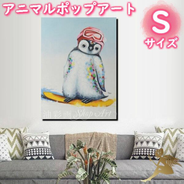 1パネル アニマルポップアート スノボペンギン Sサイズ 油彩画 インテリア モダン アートパネル 5101s