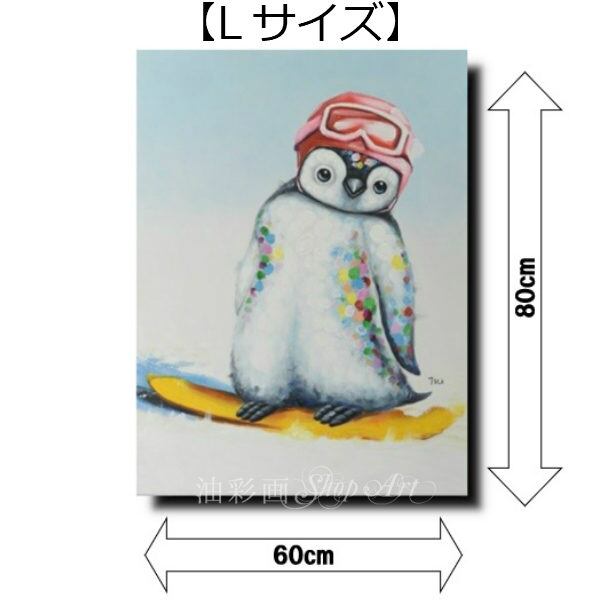 1パネル アニマルポップアート スノボペンギン Lサイズ 油彩画 インテリア モダン アートパネル 5101l