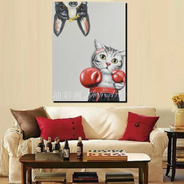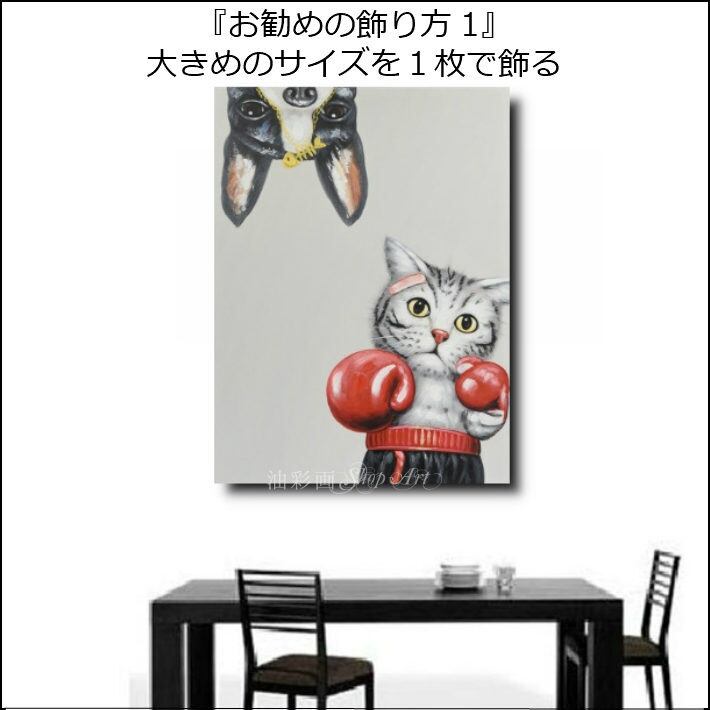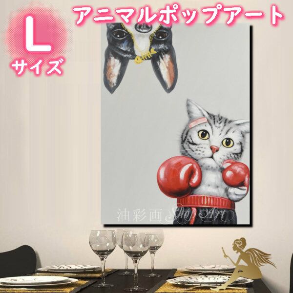 1パネル アニマルポップアート ネコパンチ Lサイズ 油彩画 インテリア モダン アートパネル 5103l